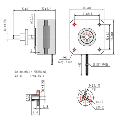 M415B or M420B driver for NEMA8, NEMA11 or NEMA17 stepper motors