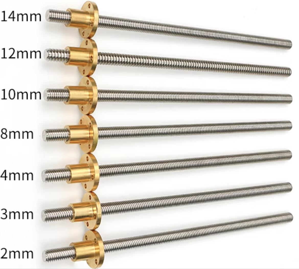 Different lead means different travel length per revolution, a larger lead means the nut travels a greater distance along the screw with each revolution, this translates to faster linear movement for a given rotational speed of the screw.