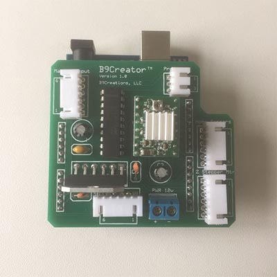 In addition to the Unoly, we'll be shipping a ready to use "B9Shield" which is simply an interface board that plugs into the Unoly and allows it to communicate with the Projector, the manual position input switches, the "home" optical sensors and also to control the z-axis stepper motor and the vat slide motor.