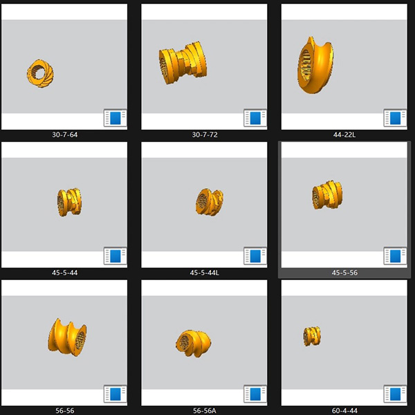 Similar to the barrel, the screws are assembled from individual screw elements.