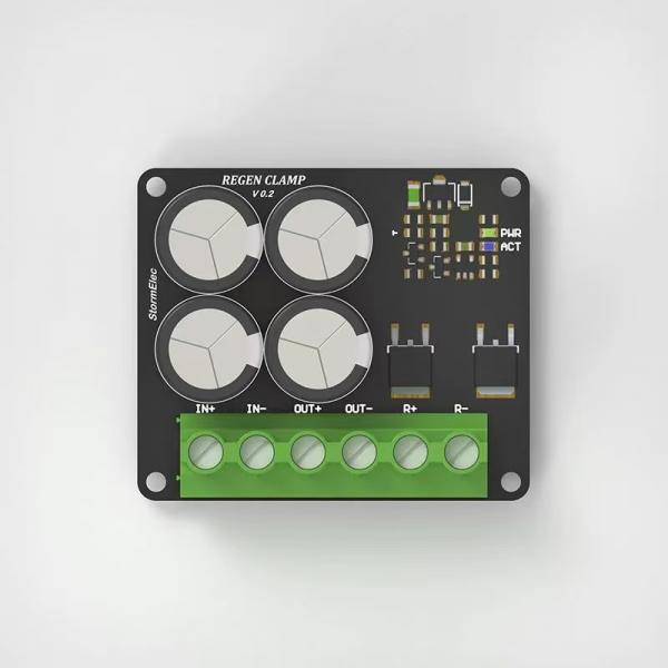 Caution: The Regen Clamp contains large capacitors. Connecting it directly to a power source can cause a damaging surge current. Always use protective measures like anti-spark connectors or NTC surge limiters to prevent this.